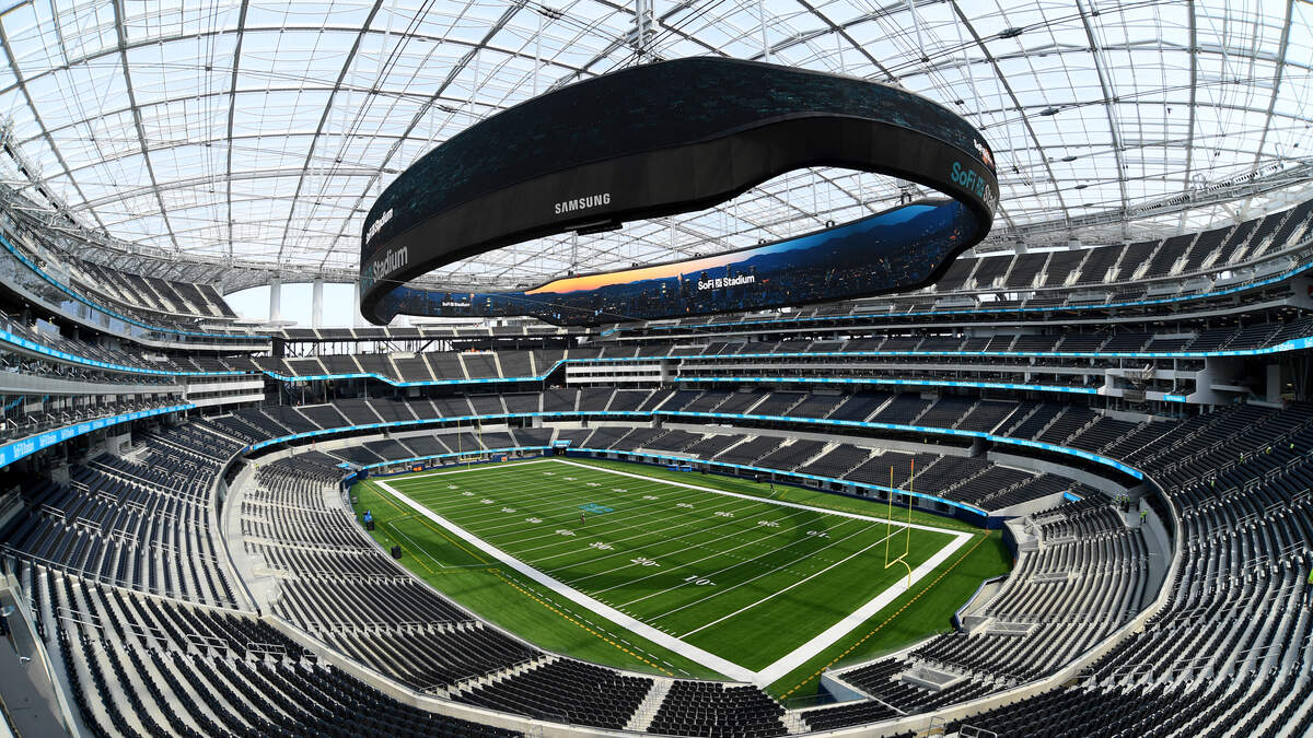 SoFi Stadium holds 70,000 fixed seats, with the capacity to fit up to 100,000 people. Suspended in the center of the stadium is the largest video screen inside any sports arena.